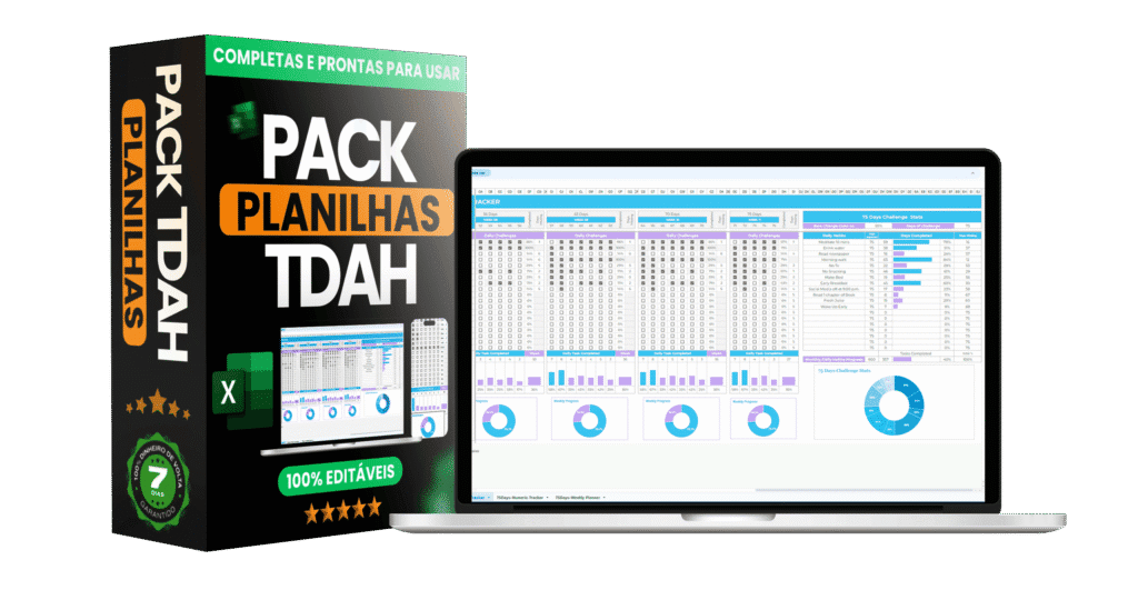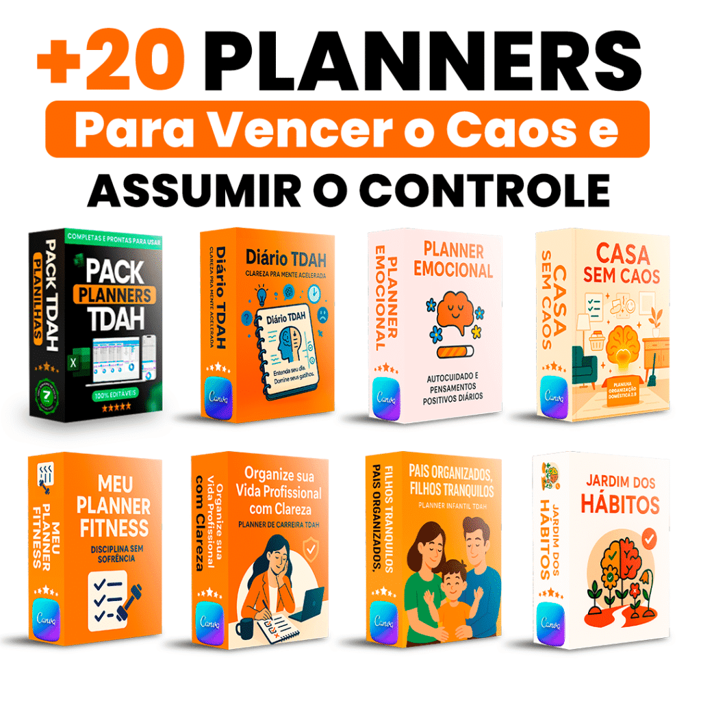 Você pode acessar agora o pacote completo de planners e ferramentas criadas para quem vive com sintomas de TDAH — mesmo sem diagnóstico.